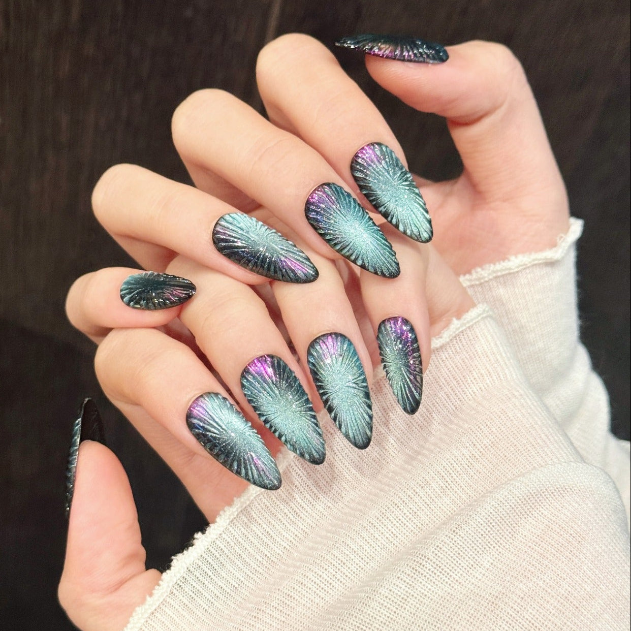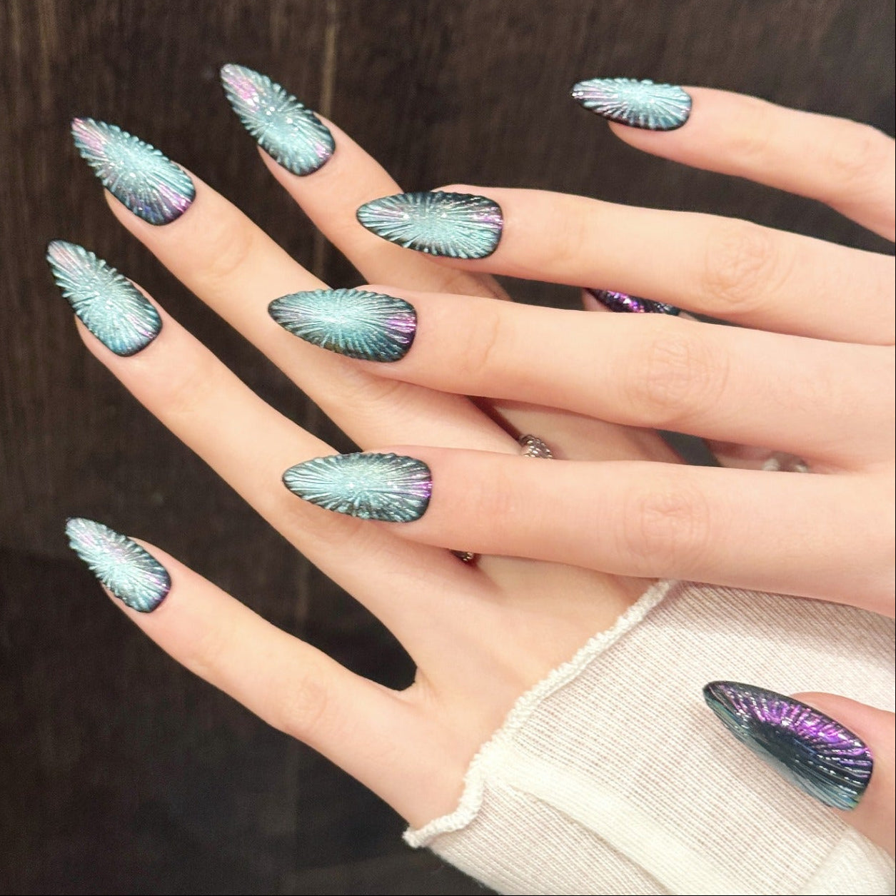 We specialize in bold, long, statement press-on nails - distinctive, expressive, and unapologetically eye-catching.