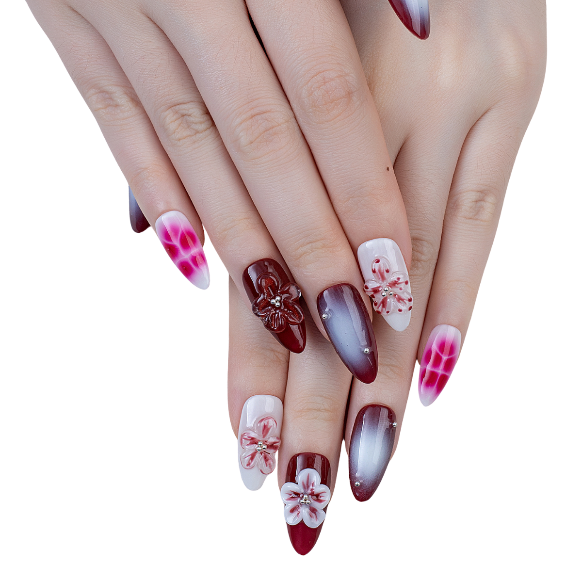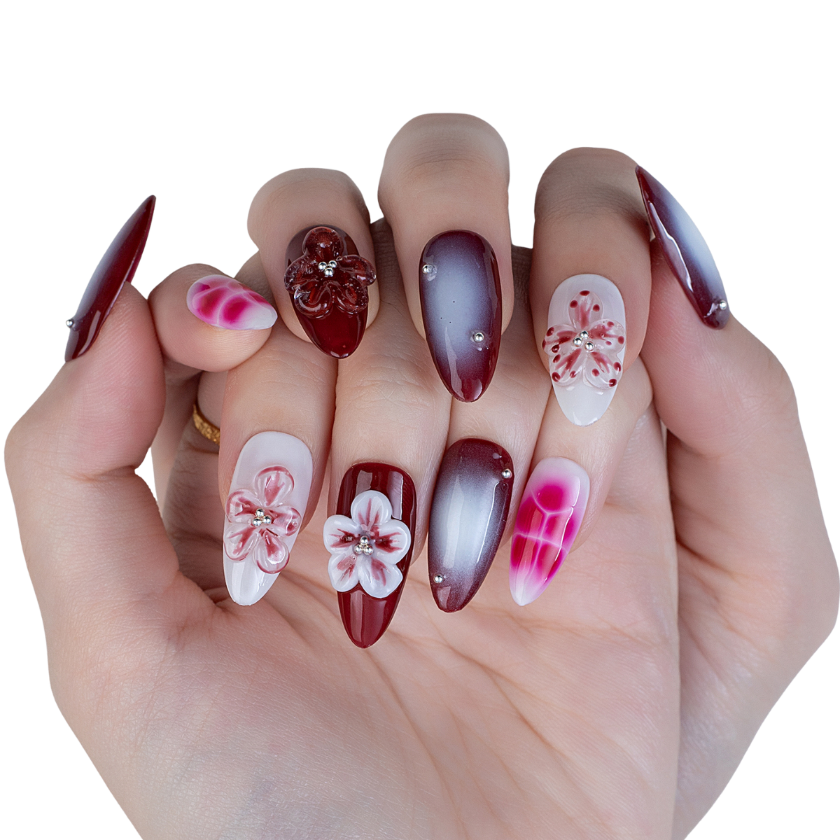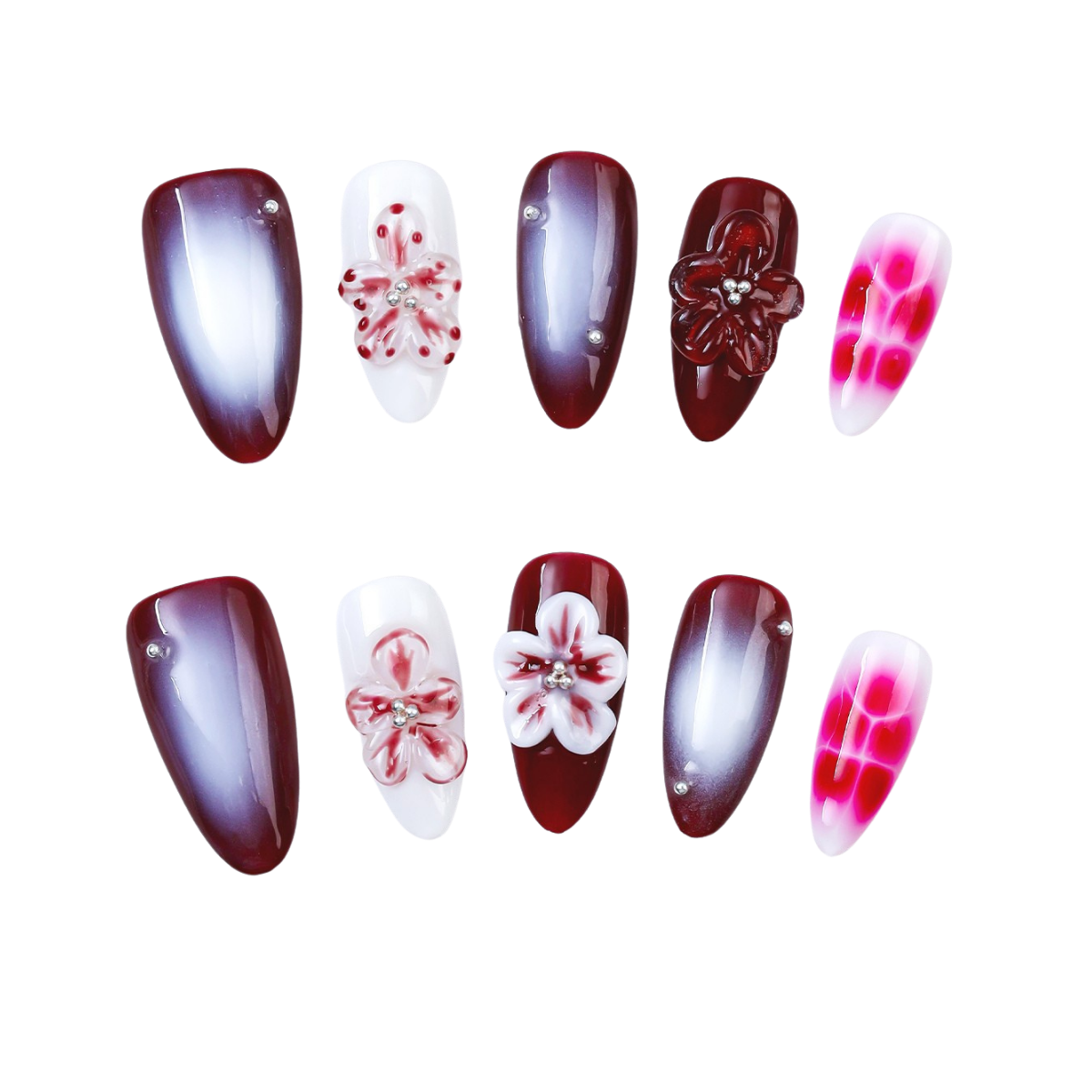 Where passion meets elegance - a fusion of deep wine tones and soft floral grace.