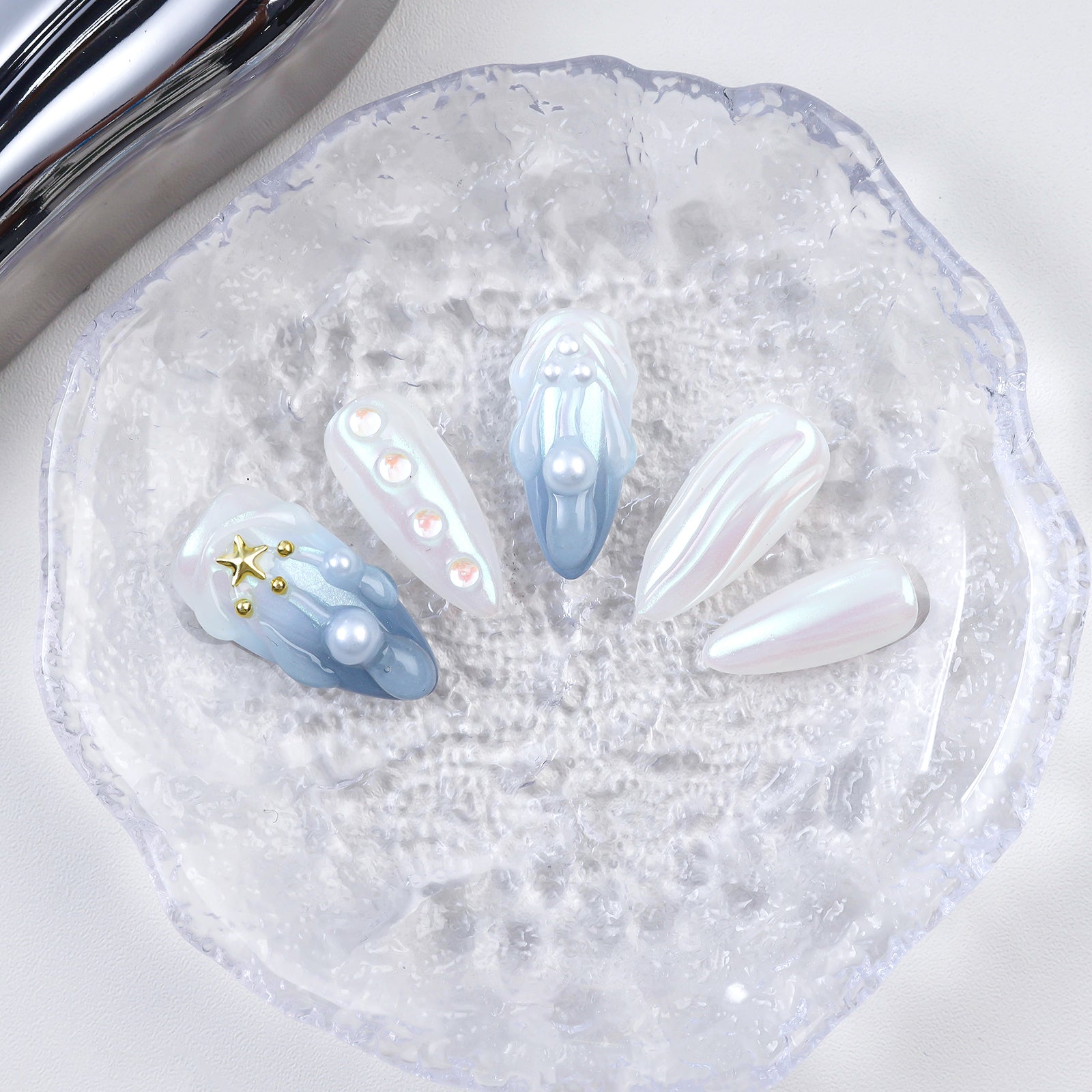 Soft ocean hues meet glossy pearl textures and golden star accents - a serene, luminous design inspired by the rhythm of the sea and the elegance of light.