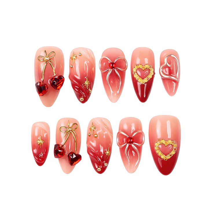 • 10 handmade press-on nails, stored in a clear protective case