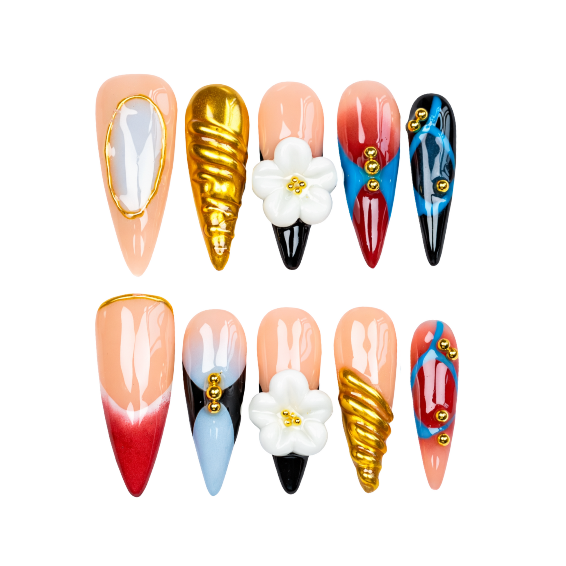 We specialize in bold, long, statement press-on nails - distinctive, expressive, and unapologetically eye-catching.