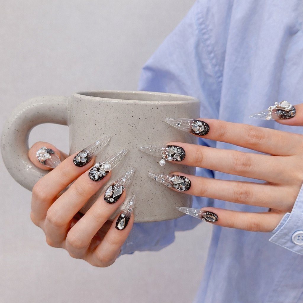 We specialize in bold, long, statement press-on nails - distinctive, expressive, and unapologetically eye-catching.