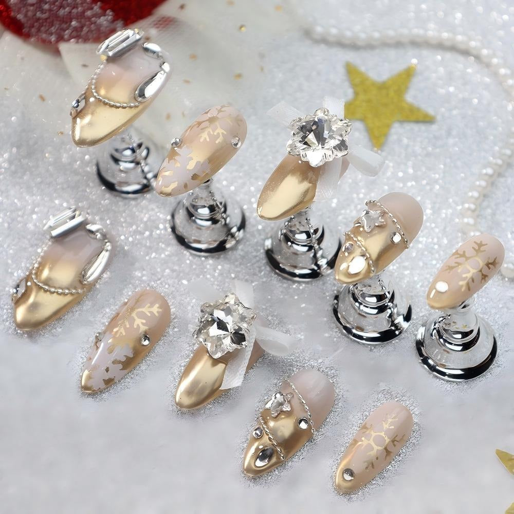 A luxurious holiday design that blends shimmering gold tones with delicate snowflake accents, creating a festive yet elegant winter look.