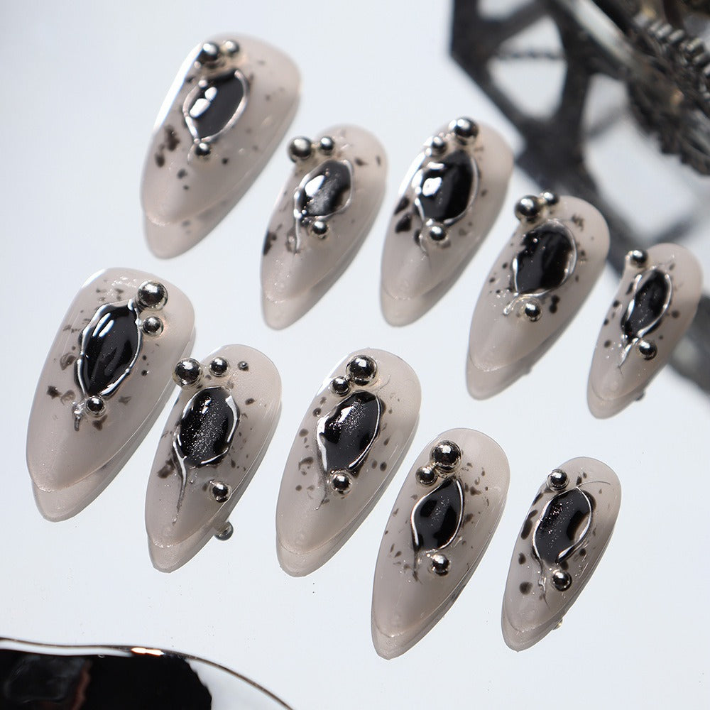 Edgy elegance with a modern artistic flair, blending bold details and metallic accents for a statement look
