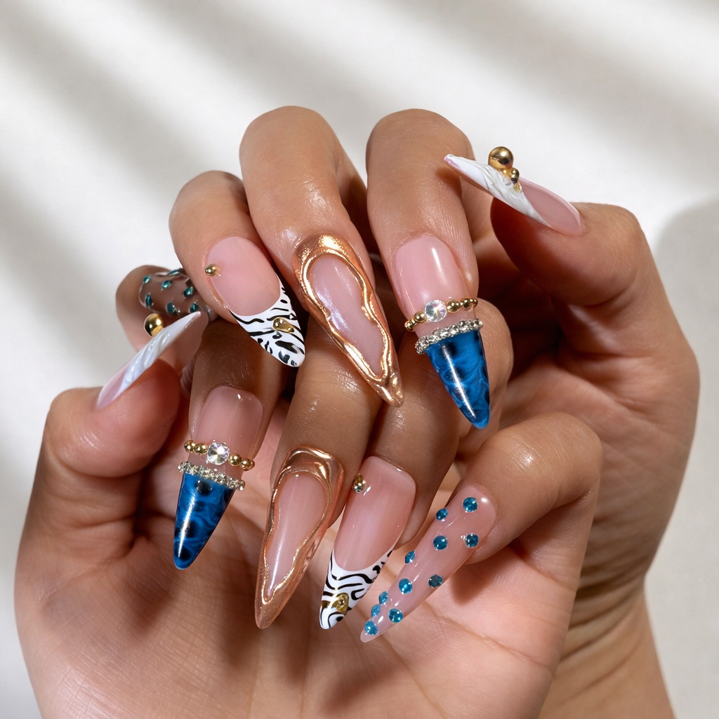 We specialize in bold, long, statement press-on nails - distinctive, expressive, and unapologetically eye-catching.