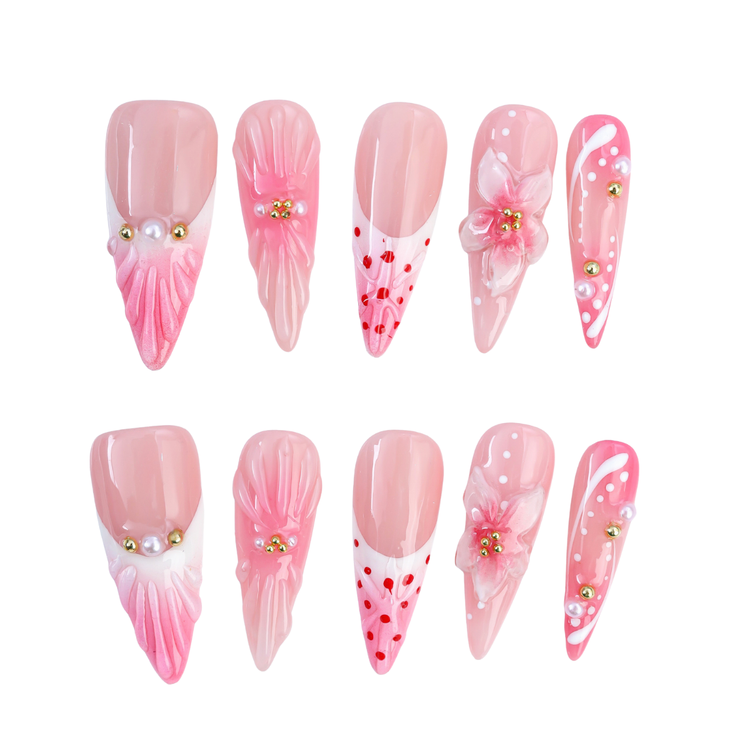 Soft pink tones meet delicate floral and pearl accents - a graceful, feminine design that radiates calm elegance and effortless charm.