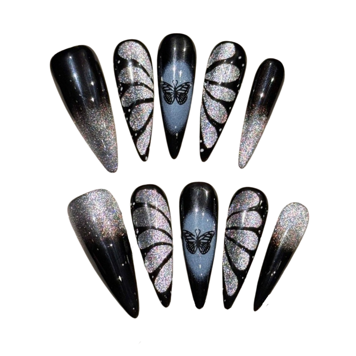 A celestial shimmer with delicate butterfly wings - perfect for nights out, photoshoots, or a magical evening under the stars