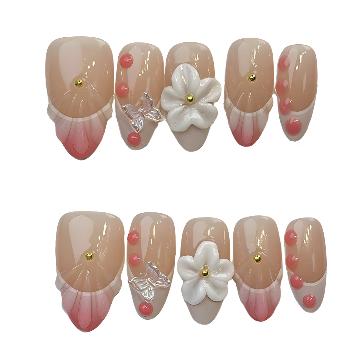 A playful nude-pink set with delicate floral accents, crystal butterfly charms, and soft pearl details - the perfect blend of sweetness and elegance.