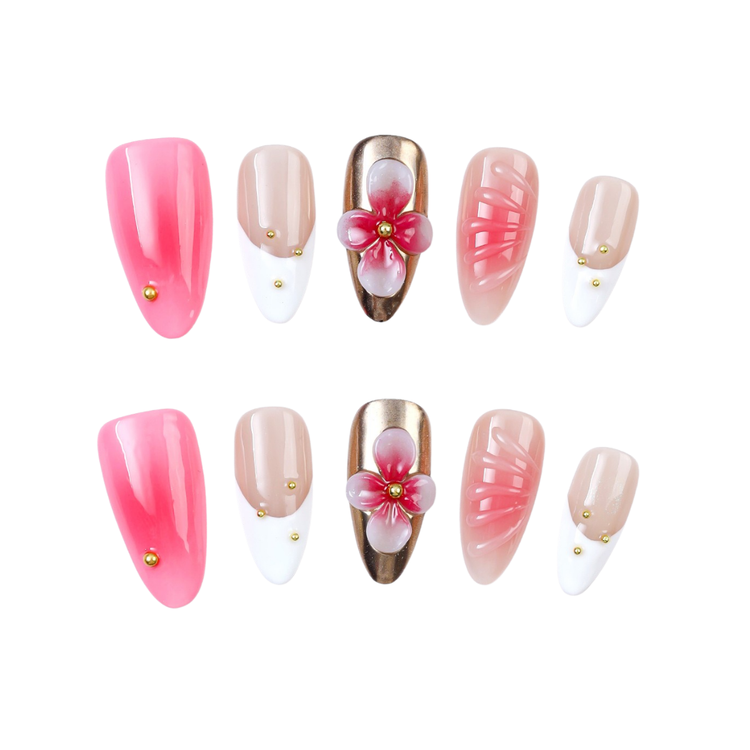 A soft blend of nude and blush tones with a golden flower centerpiece, inspired by Kyoto’s quiet elegance and timeless romance.