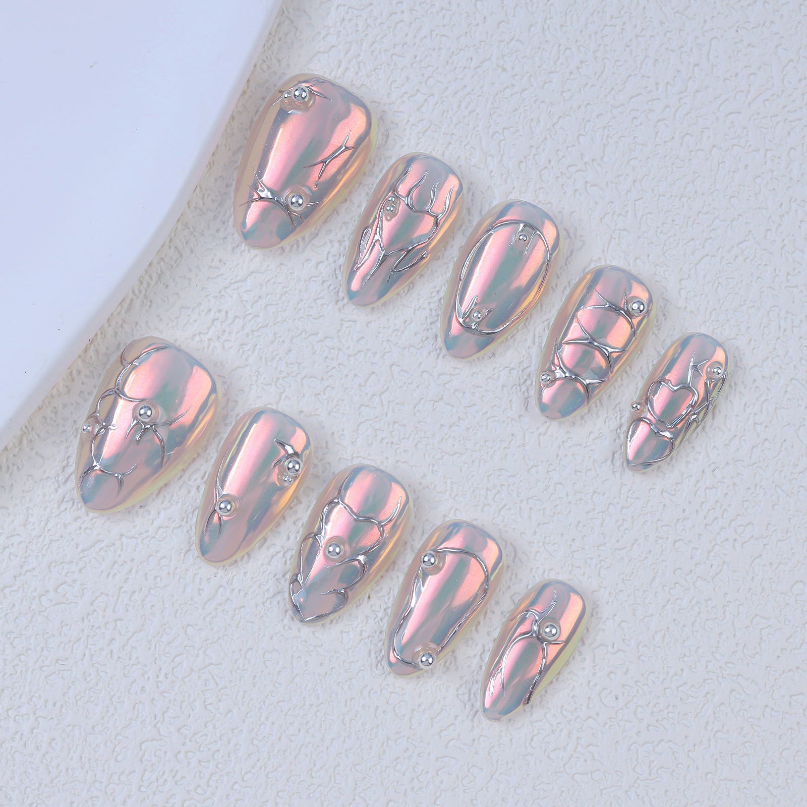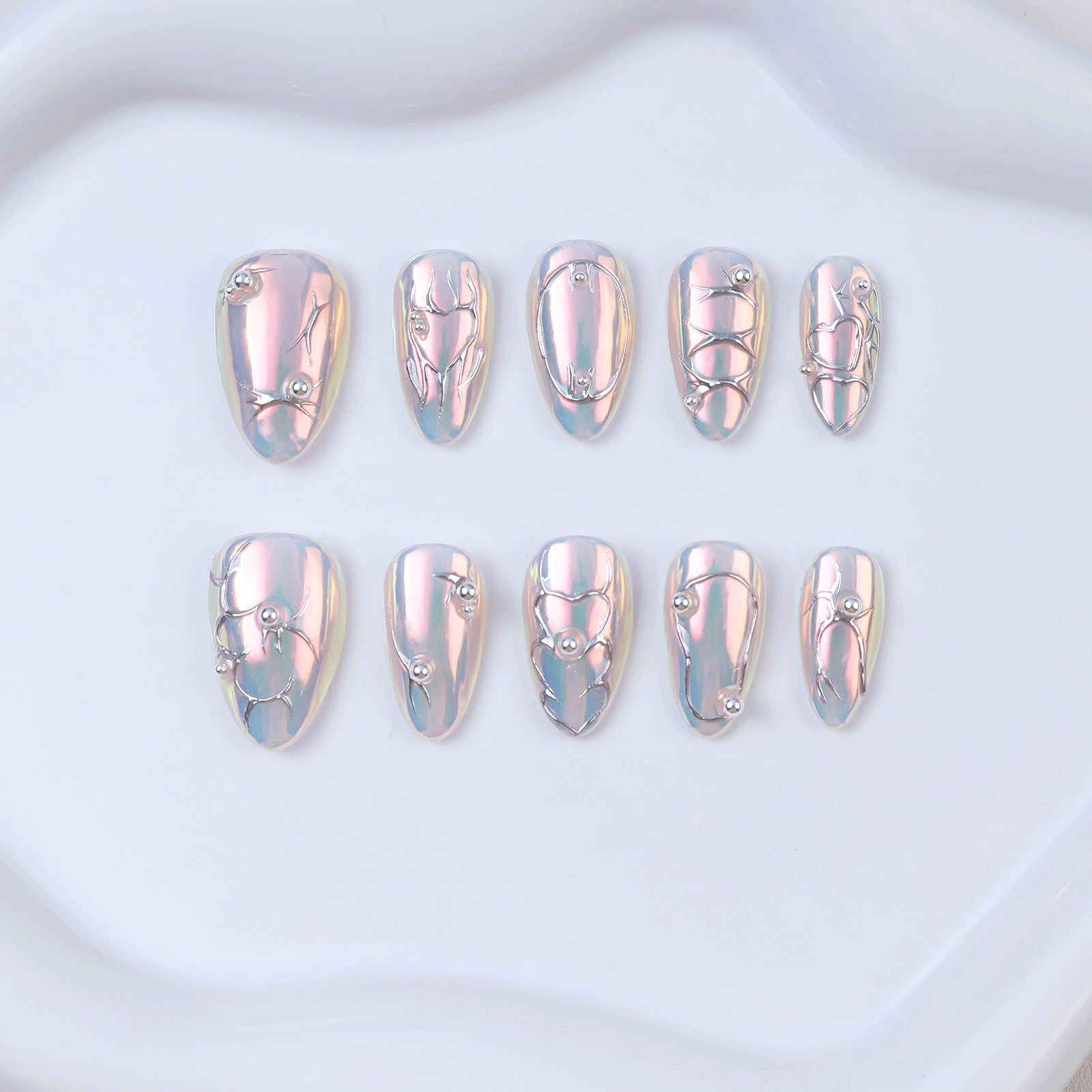 • 10 handmade press-on nails, stored in a clear protective case